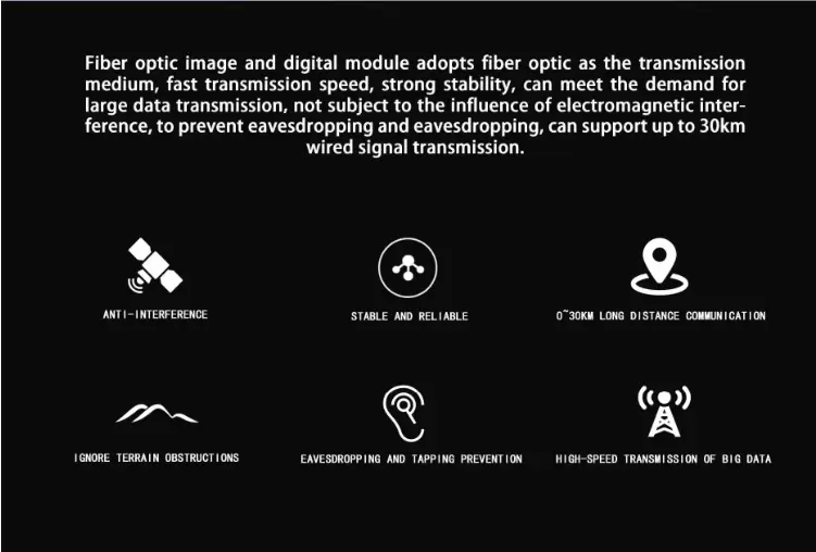 يدعم هذا النظام الاحترافي لنقل البيانات الضوئية، المدمج في الطائرات بدون طيار (مع بكرة ألياف بصرية)، نطاقات مرنة (3 كم-40 كم). يتميز بموثوقية عالية وتصميم مدمج، مما يضمن نقل بيانات مستقرًا للعمليات متوسطة/قصيرة المدى، ويلبي المتطلبات الصارمة للتداخل وعرض النطاق الترددي للمهام الصناعية.